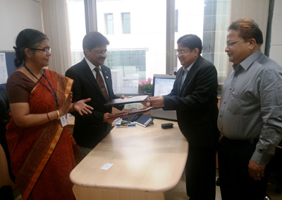 Mr Manoj Lodha–President (Finance) and Mr Rajiv Deshmukh–Senior Vice President (Banking and Finance) of Jain Irrigation have exchanged the Memorandum of Understanding on 7th March 2014 with Mr CS Meena, GM–Dena Bank and Ms Jaya Chakraborty, Deputy GM–Dena Bank in the head office of Dena Bank at BKC, Bandra (E) Mumbai–51.
