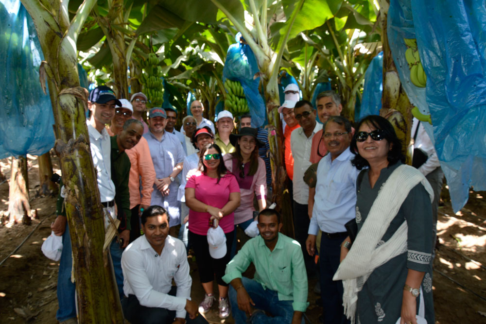 During this tour, Bolivia’s Ambassador Juan Jose Cortez Rojas, Panama’s Ricardo Augusto Berna Meneses, Ecuador’s Hector Cueva Jacome, Mexico’s Agriculture Attache Santiago Ruy Sanchez, El Salvador’s Ambassador Ariel Andrade, Cuba’s First Officer Juan Carlos Sanchez, Chile’s Ambassador Juan Angulo, Brazil’s Agriculture Officer Dalci Bagolin, Costa Rica’s Ambassador Eduardo Salgado Retana and Chief Editor of Latam a Leading newspaper a in Latin American Alfredo Evaristo Boada Mola visited several establishments of Jain Irrigation at Jalgaon, India. They also went on a tour of Raver where they surveyed banana crop of Indian farmers.