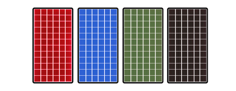 Coloured BIPV modules are manufactured using coloured solar cells. Rest of the material is similar to normal multi crystalline modules. Coloured solar cells are available with different coloured coatings.